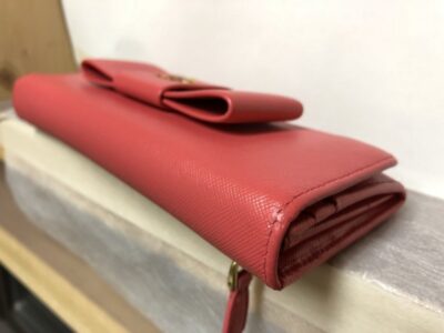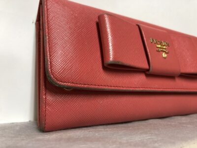 表面に凹凸があるサフィアーノレザーですが、塗膜剥がれや角スレ・リボン部分のスレが多いのが欠点となります。