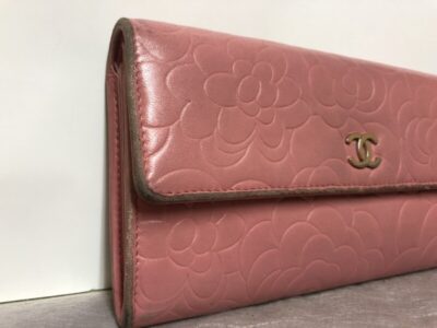 シャネルで花柄模様が特徴の「カメリア」財布です。
