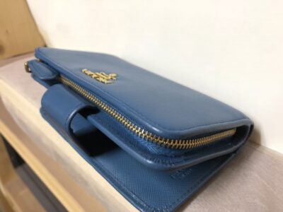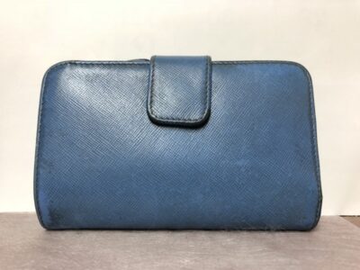 これはPRADAのサフィアーノ財布ですが、表面に細かい凹凸がありますのでどちらかと言えば塗膜が剥がれやすい感じです。
