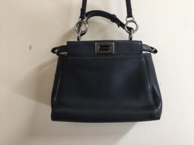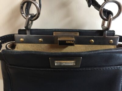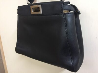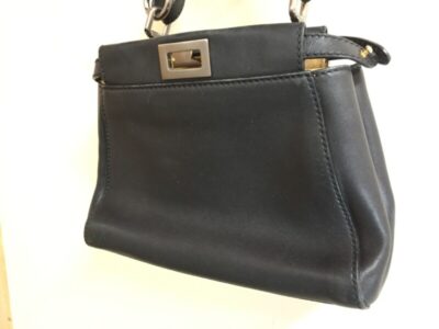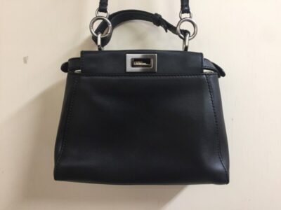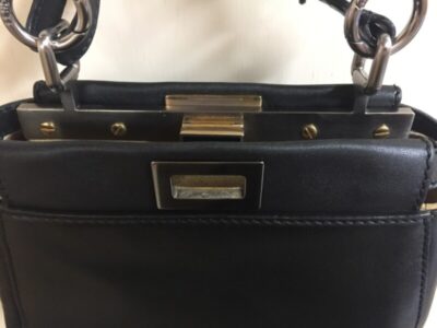 バッグはFENDI(フェンディ)となり、色は黒ですが、間口の部分や四隅のスレがあり、全体的に黒っぽさが薄れているような状態です。ただ、大きな傷はほぼありません。