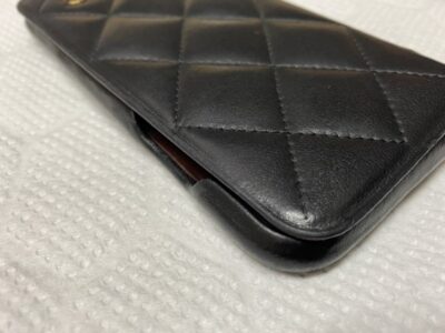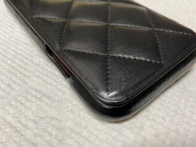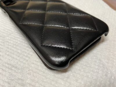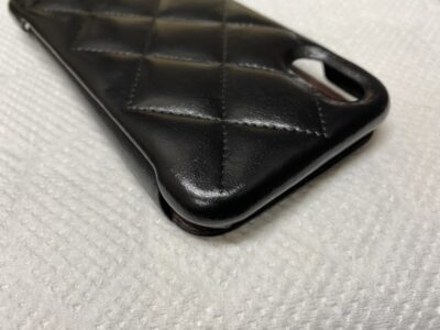 革には光沢感のある革や、マット感(艶消し)された革など艶の違いにより様々な見た目がありますが、今回写真で紹介したスマホケースは艶感が落ちた事により元々黒い革が白ボケっぽく見えていると思います。
