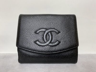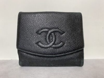 ご紹介するのはCHANEL(シャネル)の財布になります。全体的に白ボケた感じがあり、角や縁周りはスレて色落ちをしていました。
