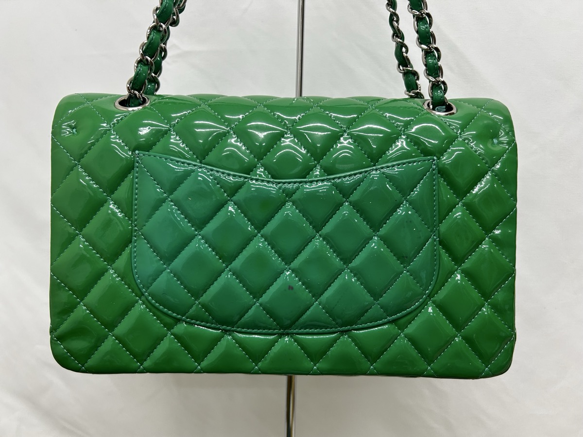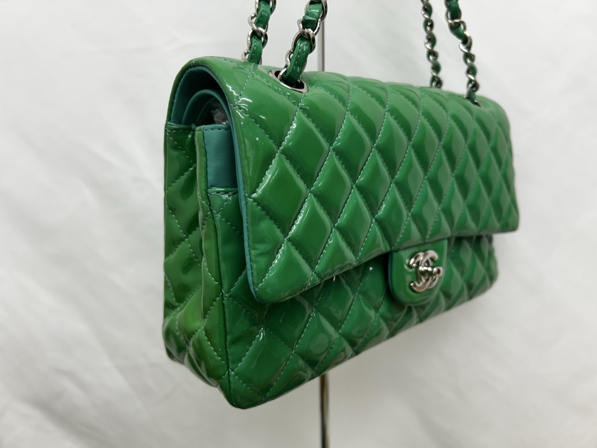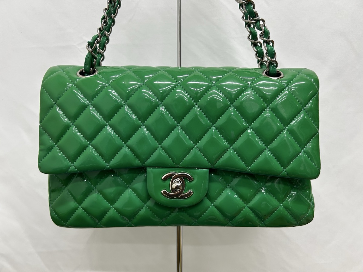 今回ご紹介するのは、CHANEL(シャネル)マトラッセ エナメルバッグの修理事例です。長年大切にお使いだったバッグですが、エナメル特有の経年変化により全体が黄ばみ、本来の深いグリーンから黄緑色へと色が変化してしまっていました。