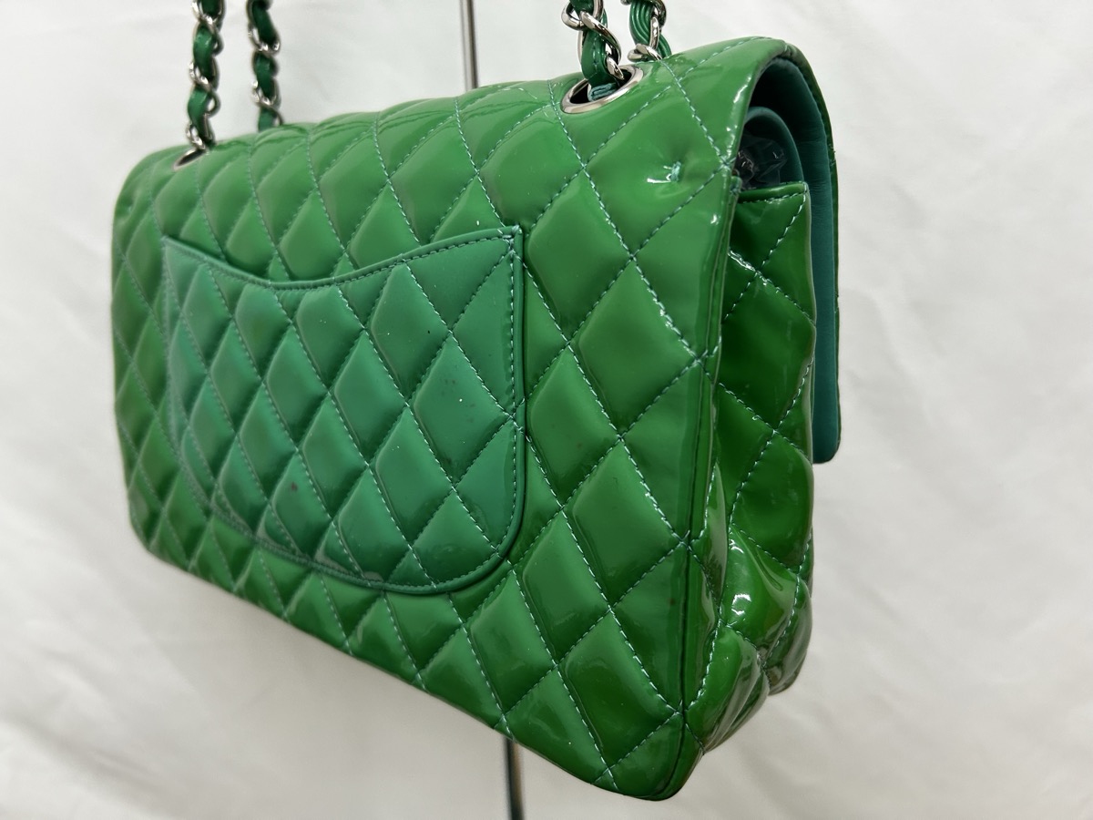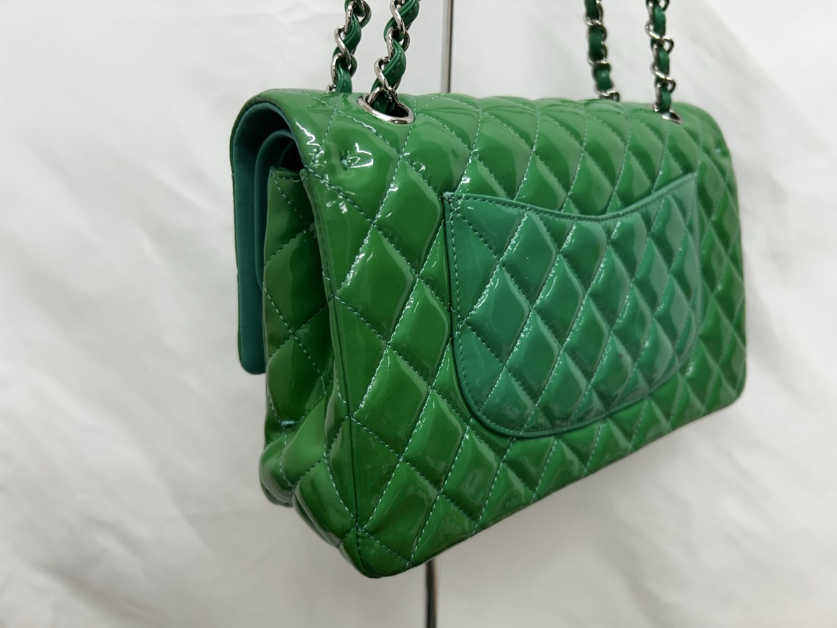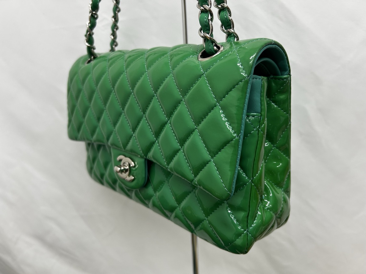 今回ご紹介するのは、CHANEL(シャネル)マトラッセ エナメルバッグの修理事例です。長年大切にお使いだったバッグですが、エナメル特有の経年変化により全体が黄ばみ、本来の深いグリーンから黄緑色へと色が変化してしまっていました。