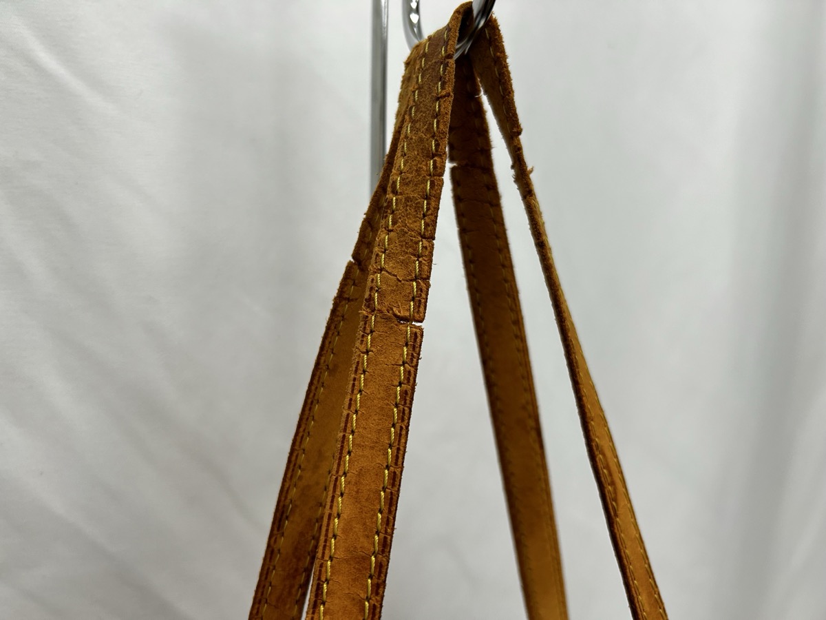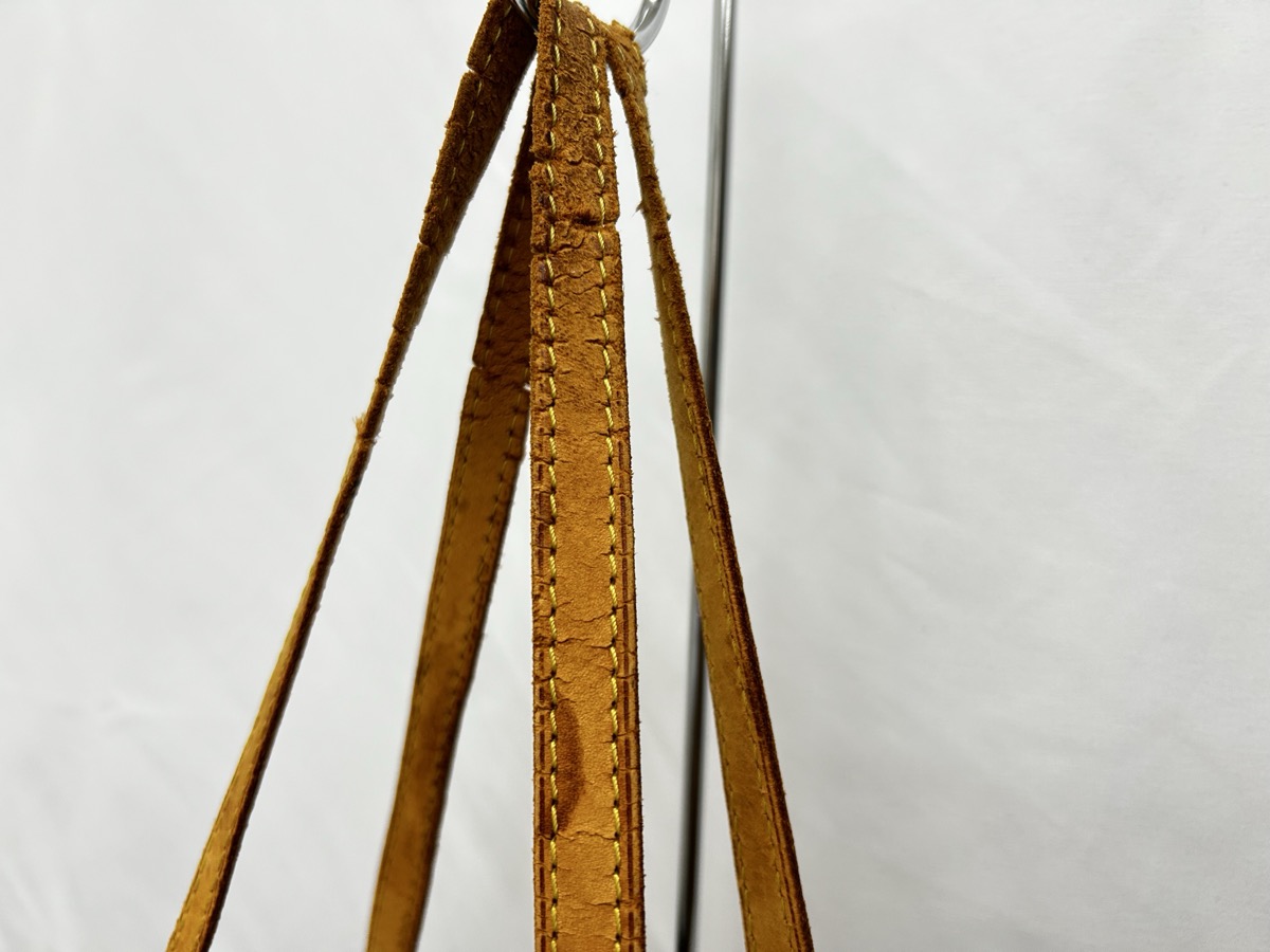 さらに、持ち手の付け根部分も革がかなり弱っており、切れてはいないものの、今にも裂けそうな状態でした。持ち手を支える重要な箇所のため、このまま使用を続けると破損の恐れが高く、早めの修理が必要な状況でした。