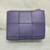 ポシェット・フルールの修理において、最も神経を使う作業の一つがマスキングです。中央のヌメ革ベルトや、開口部の縁、そして美しいライトブルーの内側は、今回カラーチェンジの対象外です。
